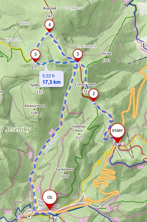 3.10.2025 Dlouhé stráně 8,1 km 4.10.2025 Červenohorské sedlo – Kouty nad. Desnou 17,5 km 5.10.2025 Zámek Losiny 1 km 18.10.2025 Poličná – Lázy 9,6 km